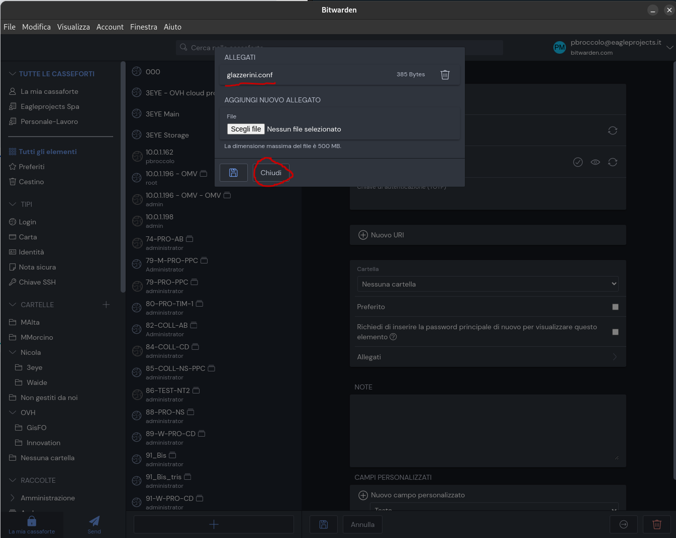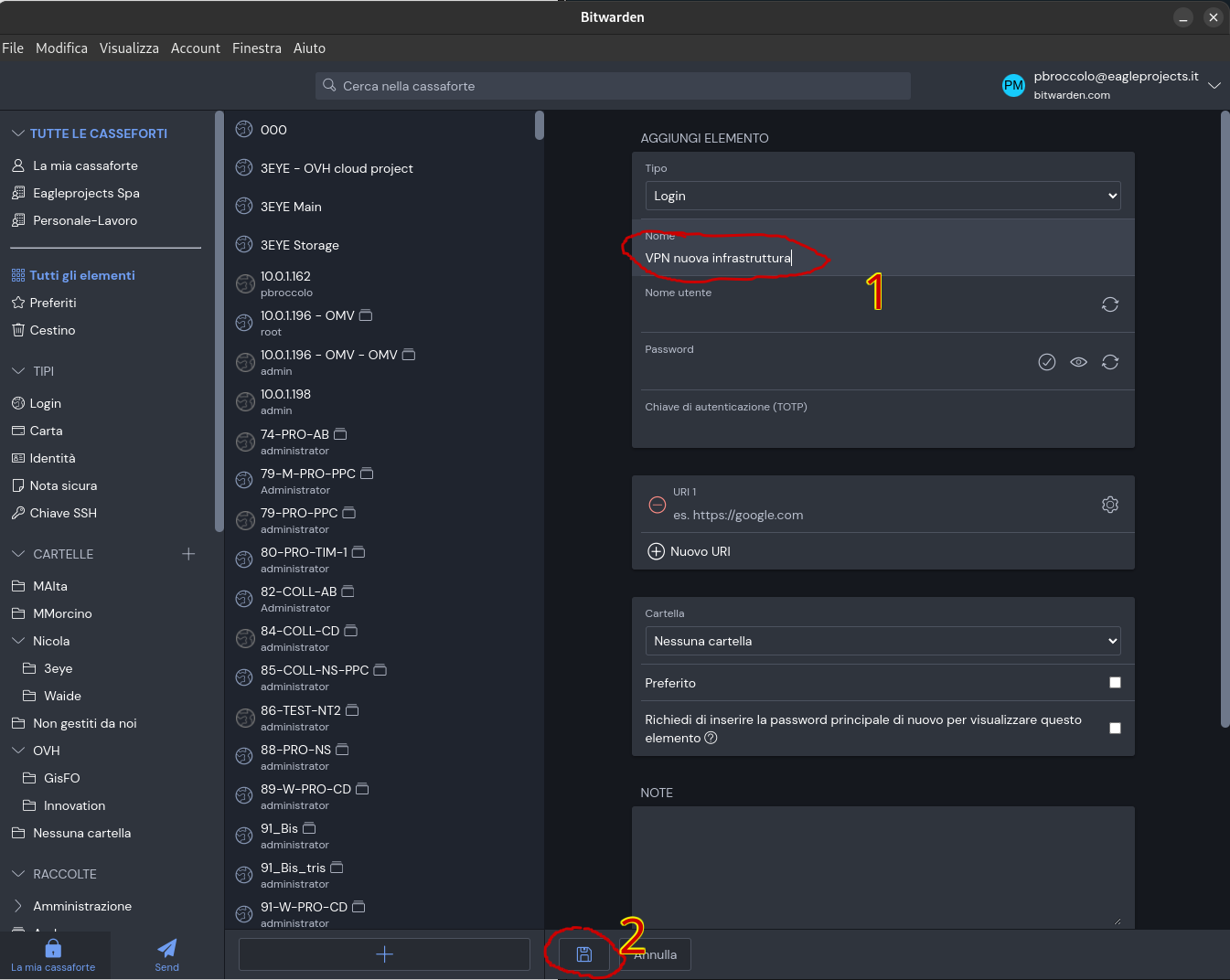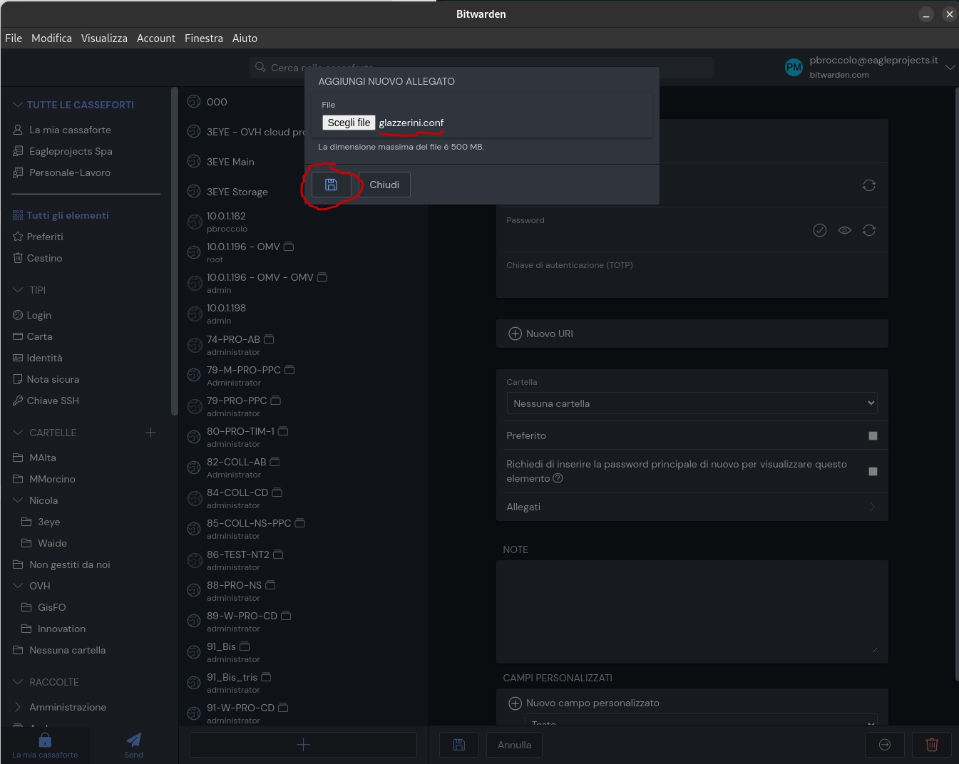 Salvare certificato in Bitwarden