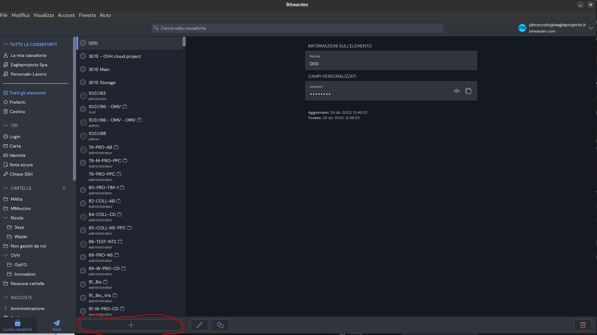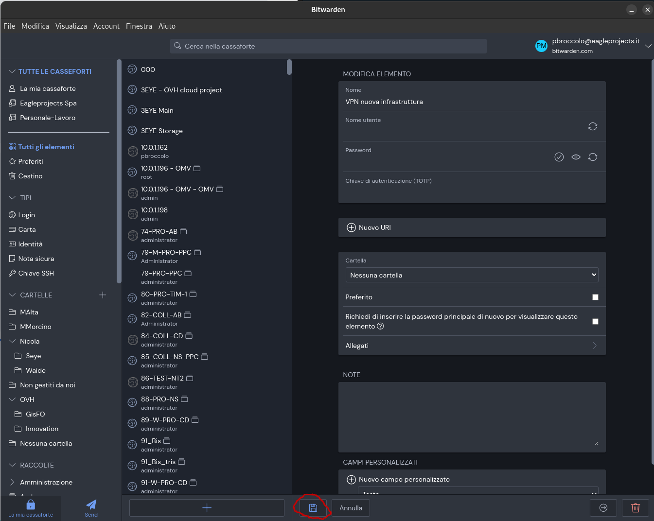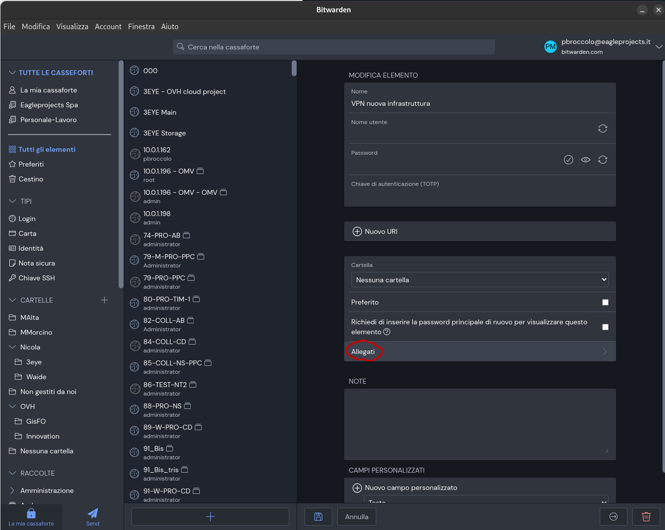 Salvare certificato in Bitwarden