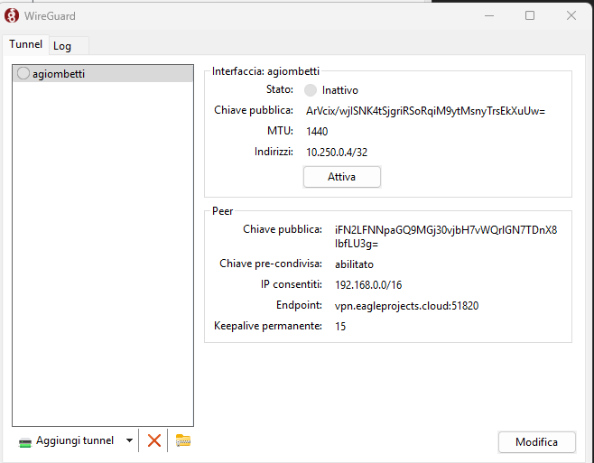 Per qualsiasi problematica scrivere a helpdesk@eagleprojects.it e in cc con oggetto: Problematica VPN WireGuard