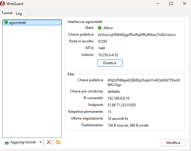 Cliccare su attiva quando si necessita della vpn, se diventa verde la configurazione è andata a buon fine