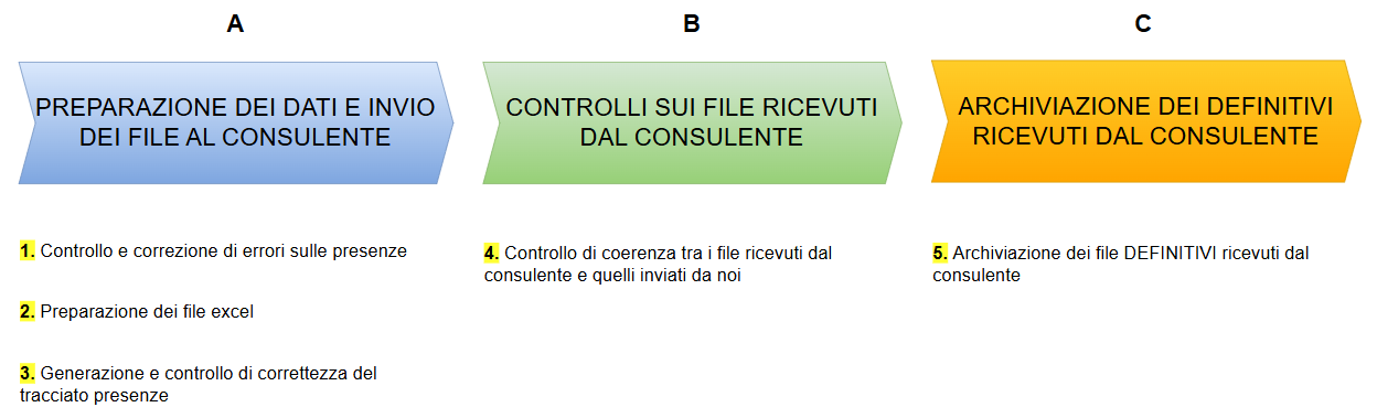 Nella presente documentazione andiamo a descrivere il flusso di lavoro mensile per la preparazione dei cedolini paga.