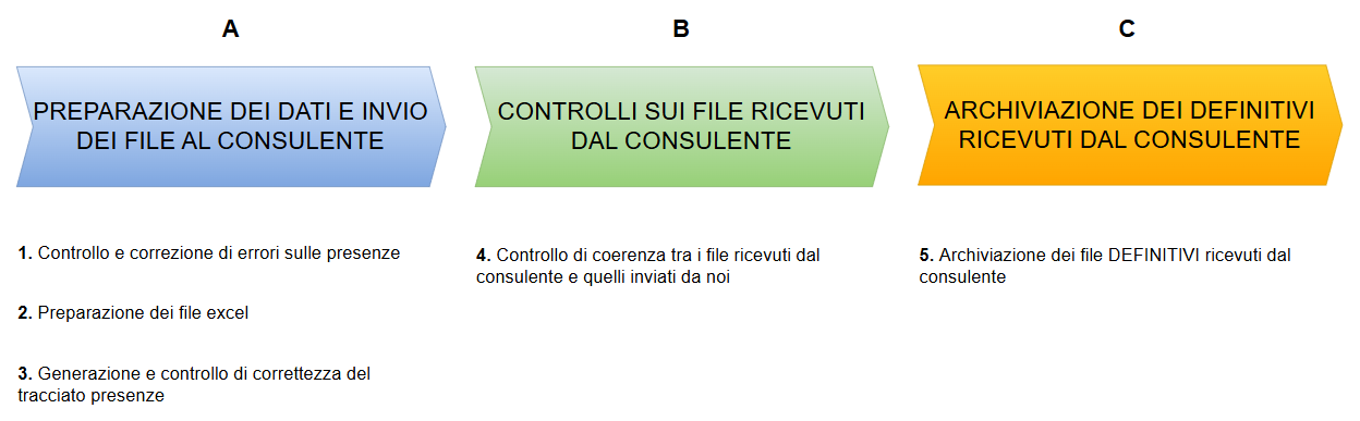 Nella presente documentazione andiamo a descrivere il flusso di lavoro mensile per la preparazione dei cedolini paga.