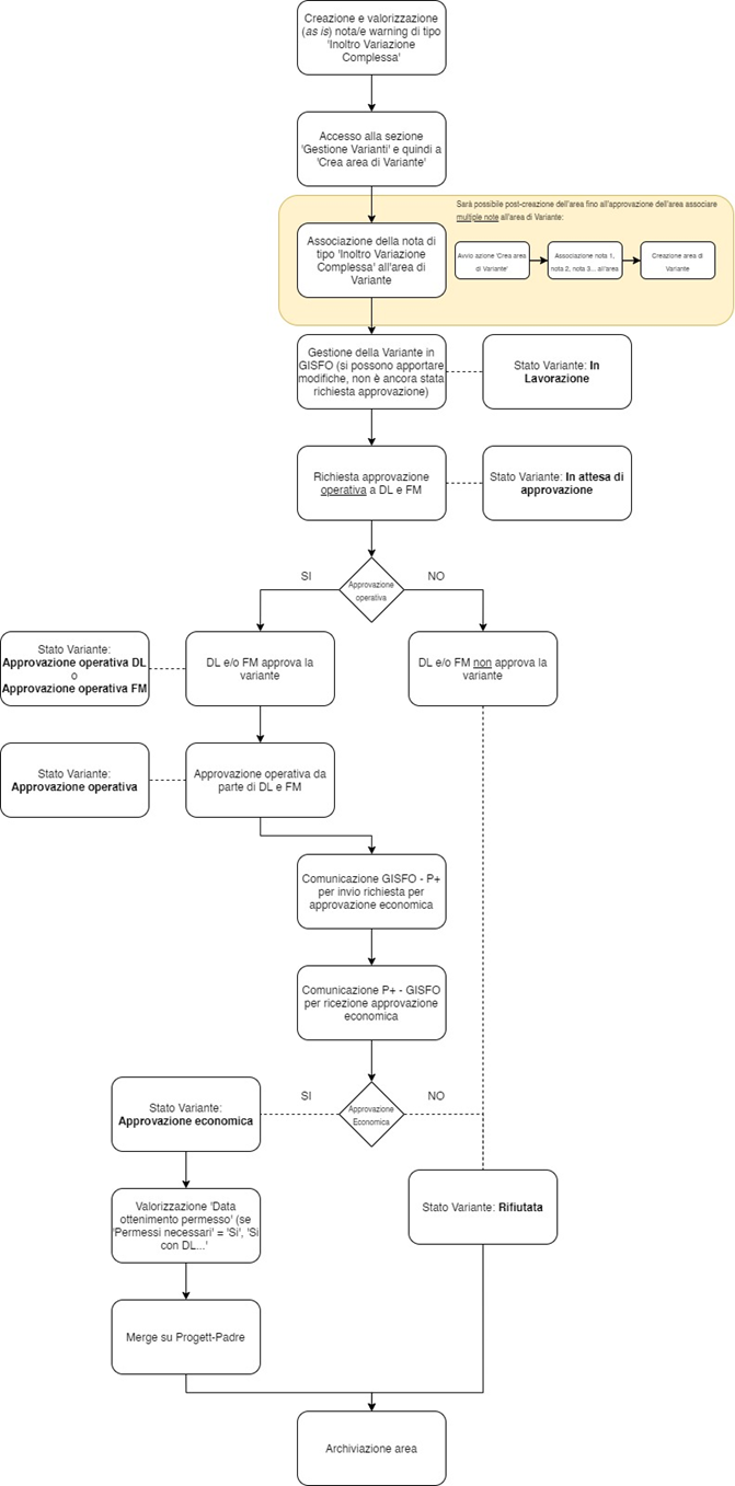 A tale scopo, si reputa necessario riportare un diagramma di flusso che descriva la “vita” di una Variazione Complessa dalla sua creazione alla sua archiviazione, per avere un punto di riferimento utile, un eagle-eye, dell’intero workflow: