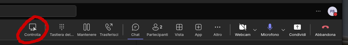Se un collega sta condividendo lo schermo e tu vuoi intervenire: