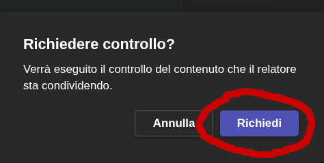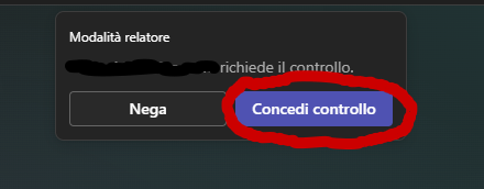 - Apparirà un messaggio al tuo collega che dovrà Concedi controllo la tua richiesta.