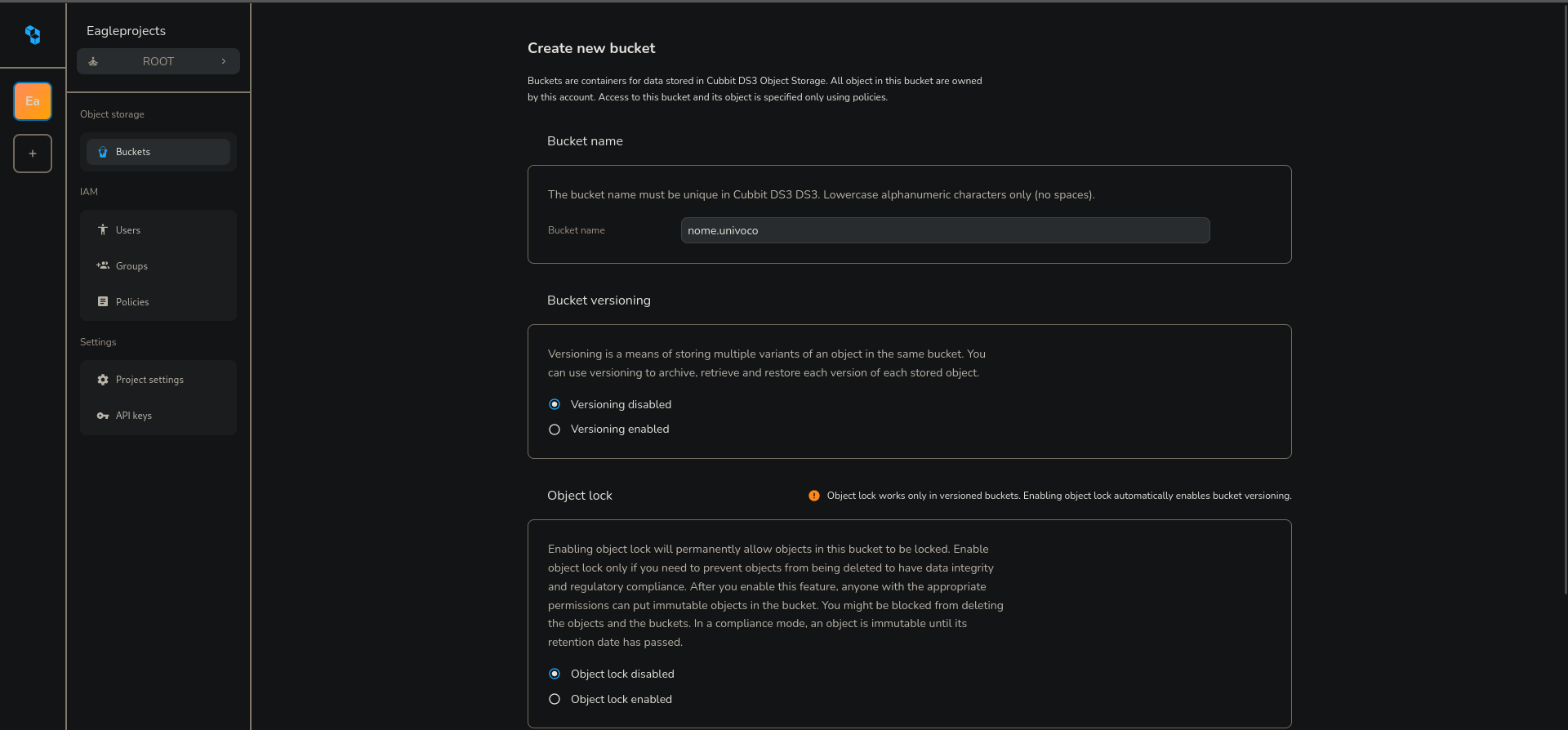 è bene salvarsi di valori di: CRN bucket e CRN objet, che ci serviranno per creare le rules