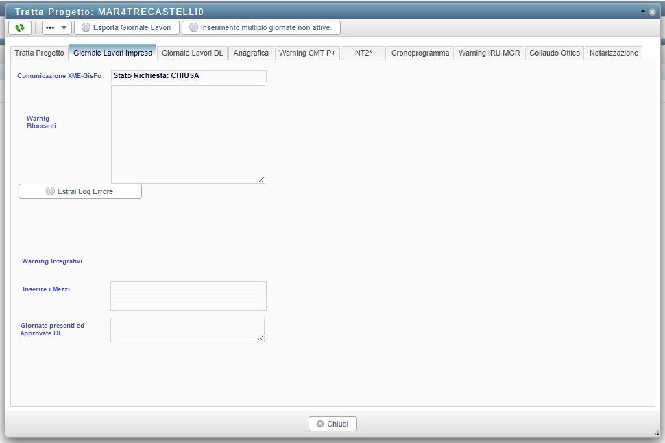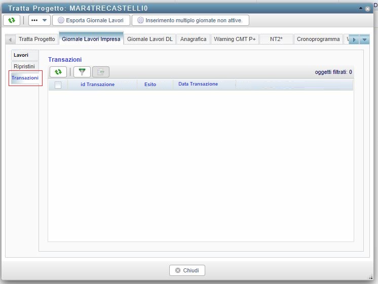 scheda di dettaglio Tratta, tab "Giornale lavori impresa", nuovo sotto-tab "Dettaglio transazione XME" + testo nel box "Descrizione" per inserimento manuale mezzi e giornate approvate da DL
