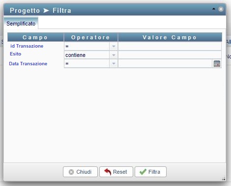 View del comando filtro all'interno del menu di II livello 'Transazioni'