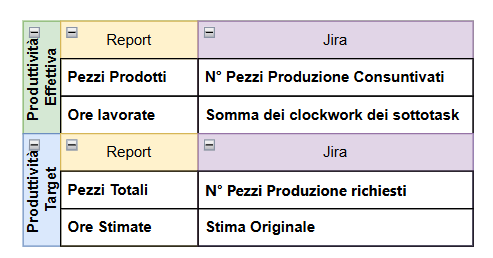 di seguito è riportata la corrispondenza tra nome de campo nel Report e il campo effettivo in Jira: