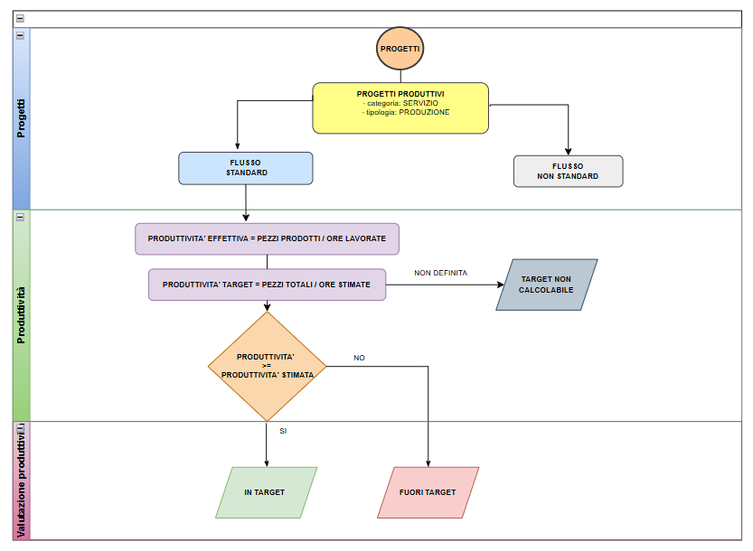 Seguendo questa logica, anche i dati sulla Produttività (effettiva e target) saranno dati dalla media della produttività di ciascun giorno per ogni task.