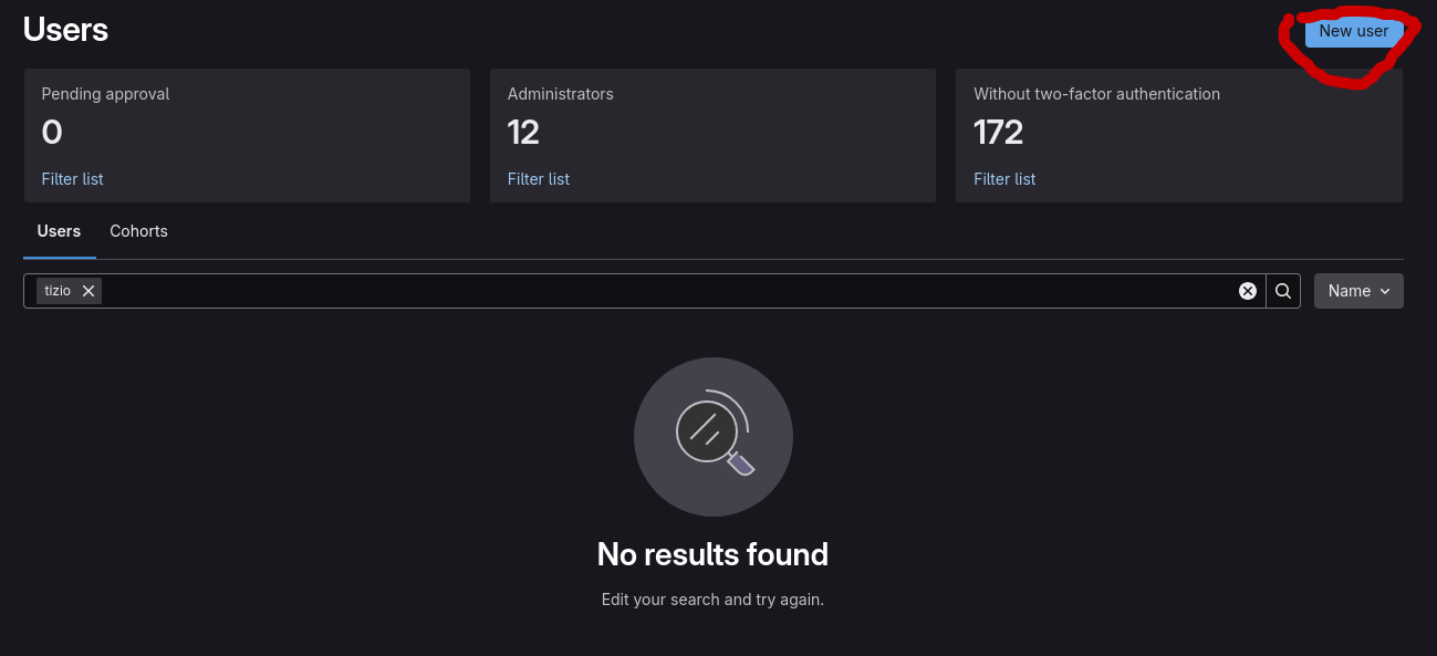 Trovare l'utente appena creato tramite il cerca prima citato o tramite questo link che lo dovrebbe mostrare tra i primi