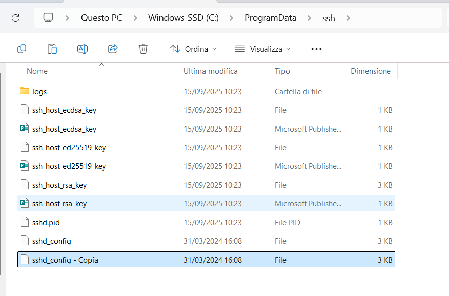 Spostarsi in C:\ProgramData\ssh e fare il backup del file sshd_config